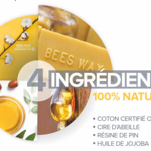 Matériaux de qualité alimentaire. Cet emballage alimentaire en cire d’abeille est fabriqué avec des matériaux organiques entièrement naturels de première qualité, une combinaison de coton biologique, de cire d’abeille, de résine d’arbre et d’huiles, facile à nettoyer et garanti pour résister à l’épreuve du temps.